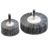 (Good) 1/4" Shank Aluminum Oxide Flap Wheels: Aluminum Oxide Flap Wheels, Steel, Stainless, Iron, Brass, Aluminum, Plastic, Fiberglass, Wood & Glass. Firm, quality Aluminum Oxide coated abrasive material. The flaps, arranged like a fan around the shaft or the tool, provide for consistent cutting action, maximum performance and long life. Excellent for working in small, difficult to reach places.